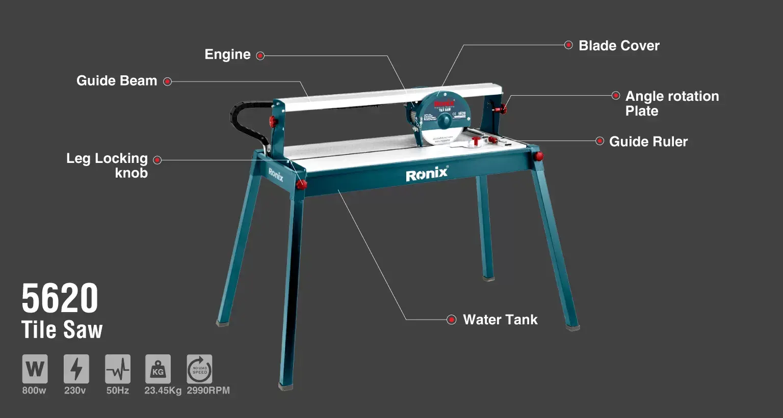 Powerful 800W motor delivers reliable performance. 200mm capacity for versatile applications. Precision cutting performance. Durable blade design. Safety guard included. Professional Ronix quality with German engineering standards. Ergonomic design for comfortable extended use. Built for durability in demanding work environments.