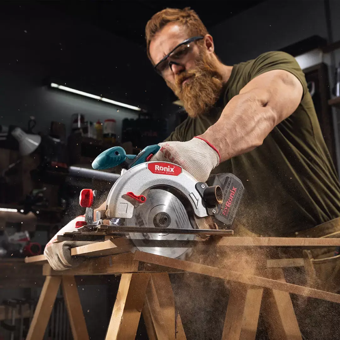 Cordless 20V lithium-ion battery powered for portability. 165mm capacity for versatile applications. Precision cutting performance. Durable blade design. Safety guard included. Professional Ronix quality with German engineering standards. Ergonomic design for comfortable extended use. Built for durability in demanding work environments.