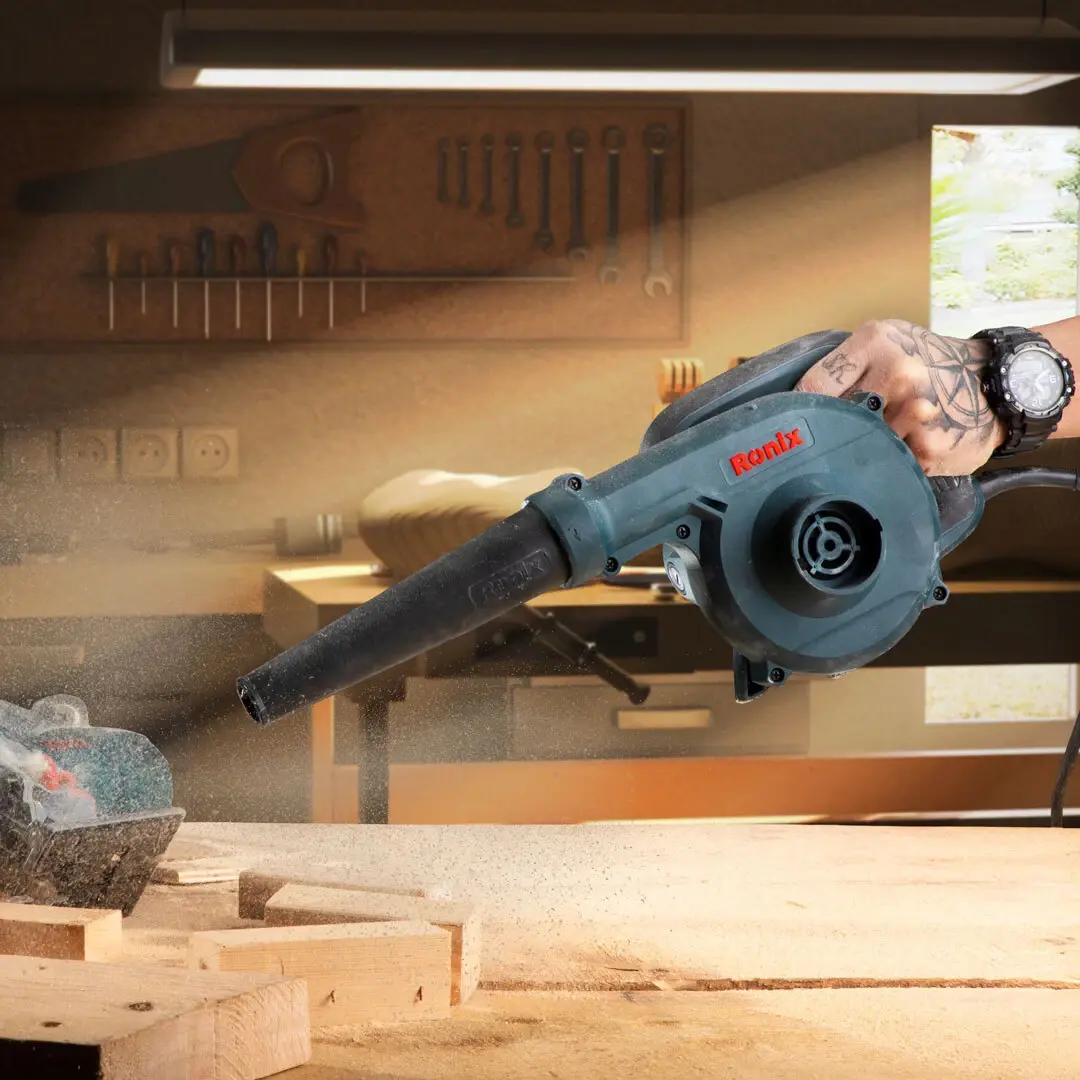 Efficient 680W motor provides a significant amount of air force for both blowing and vacuuming functions. Vortex design of fan blades will impressively increase the air force. Adjustable speed settings enable working with different blowing air rates to adapt to various kinds of applications. Lightweight design and a portable device enable convenient use. Blower tools quickly convert to a vacuum cleaner for added versatility. Strong design suitable for applications in the workshop and on the construction site\nErgonomic design and a non-slip handle provide convenient handling during operation. Heat dissipation system ensures faster cooling and longer lifetime. Lock button for convenient continuous operation.