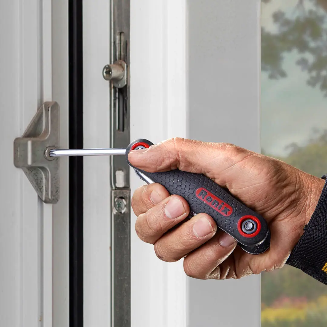 Made of heat-treated chrome-vanadium steel for rugged strength and more durability\nErgonomic ABS plastic shell that is stronger than steel and ensures comfort, slip resistance, and safety. High-quality fold-up handle firmly holds each key so you always have the size you need at hand\nThis set of popular sizes is held together in one convenient handle and can fold out to a right angle for maximum leverage or out straight for a screwdriver style. 8-piece folding torx key set for quickly tightening or loosening fasteners contains all of the common, popular sizes of T9, T10, T15, T20, T25, T27, T30, T40. Drilled tips allow use on tamper resistant security screws\nPrecisely machined Torx ends ensure a full-depth fit and maximum contact to prevent slippage and reduce wear. Hardened ends for extra-high torque during operations. Useful tool which can be used for a wide variety of applications like opening mobile phones, PDA housings, PCP, MP3 players, etc.